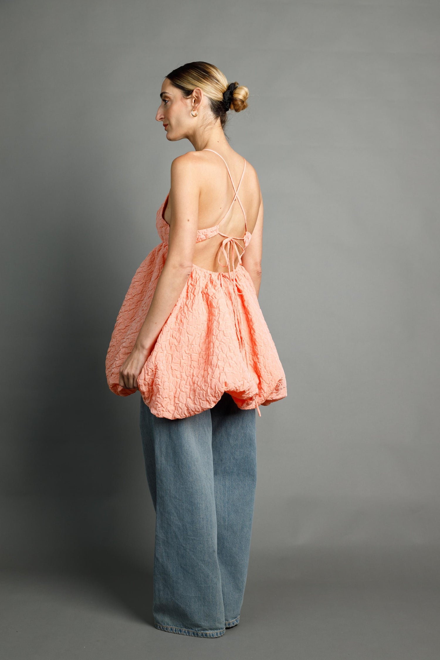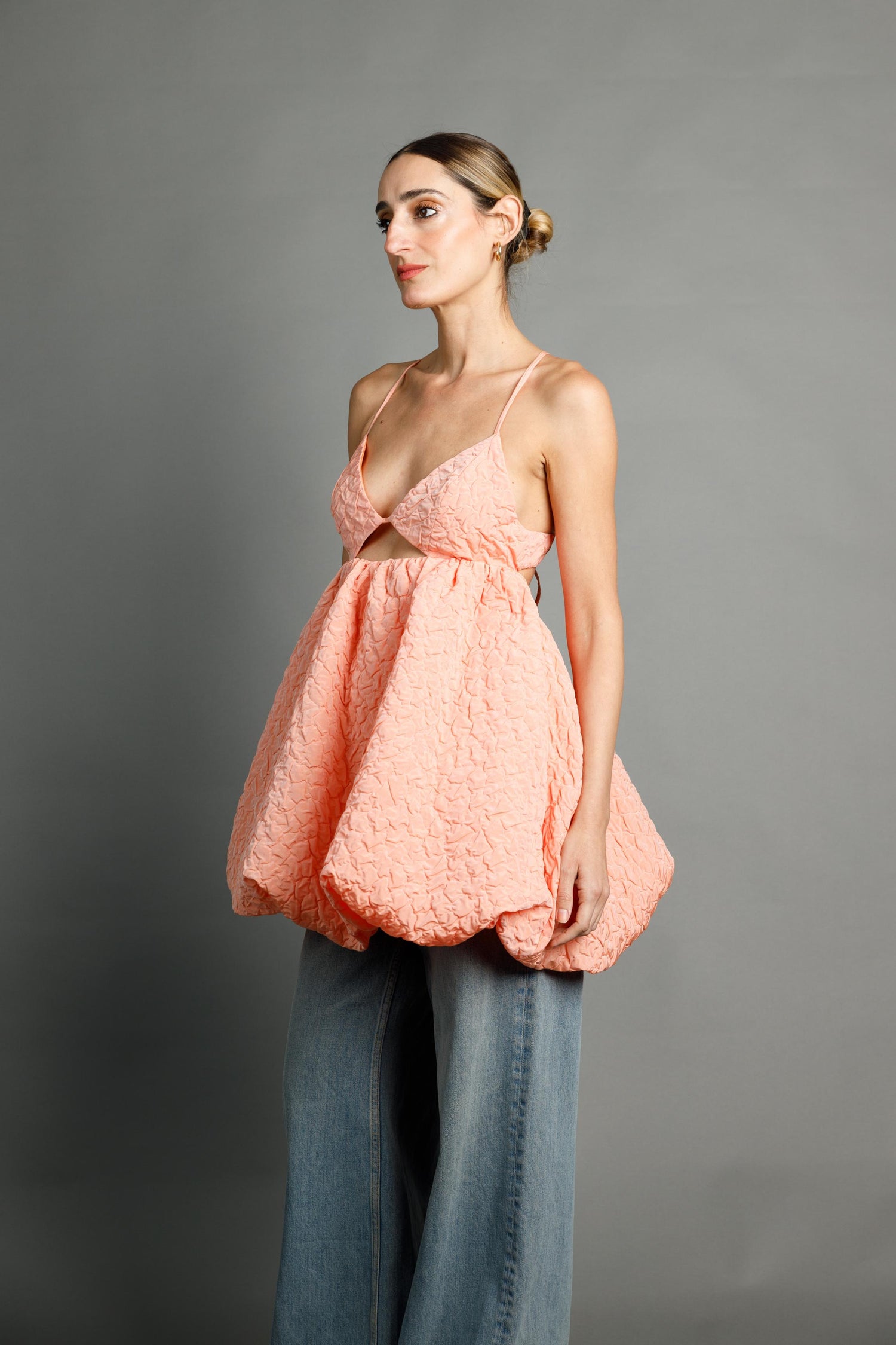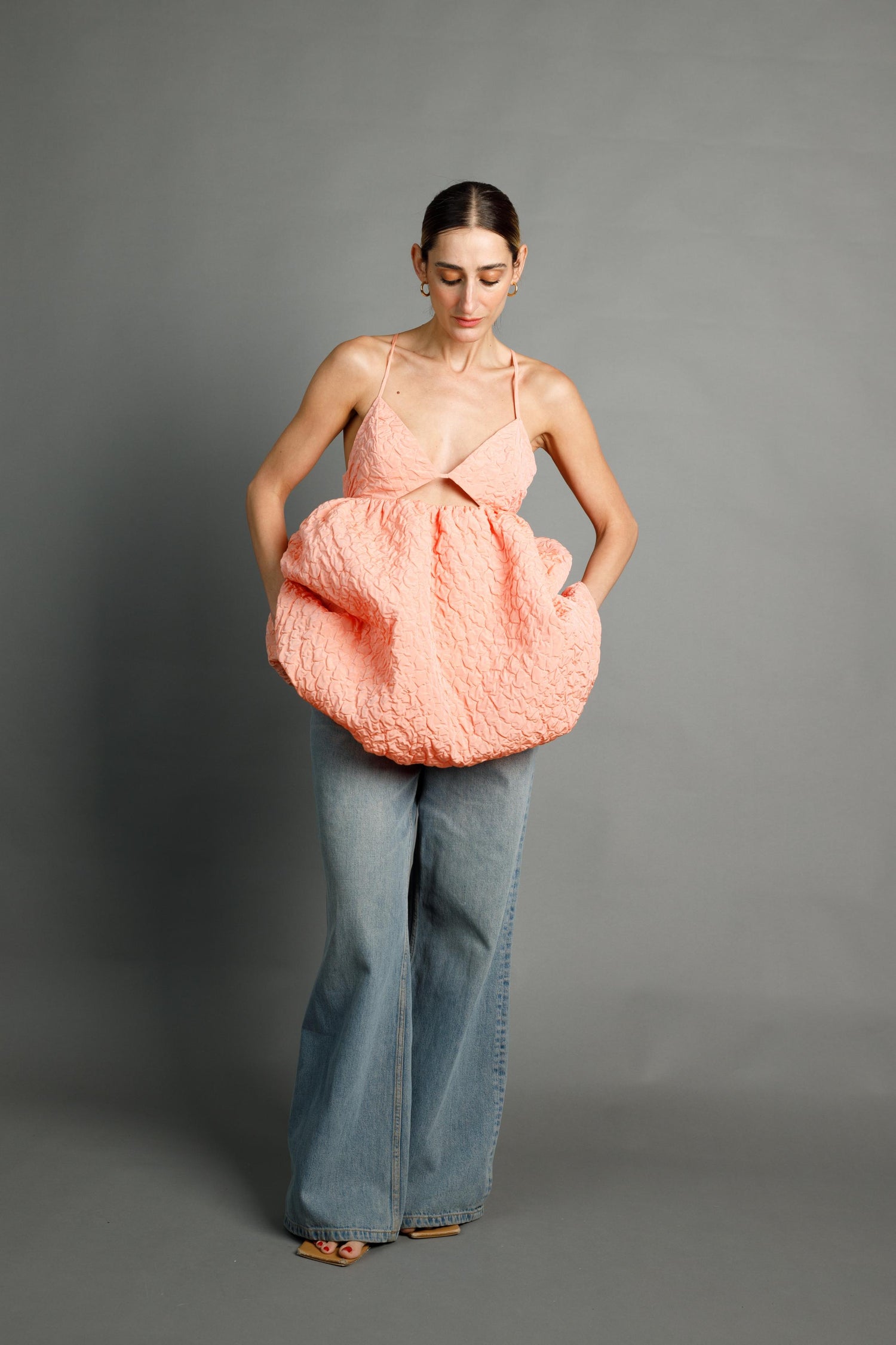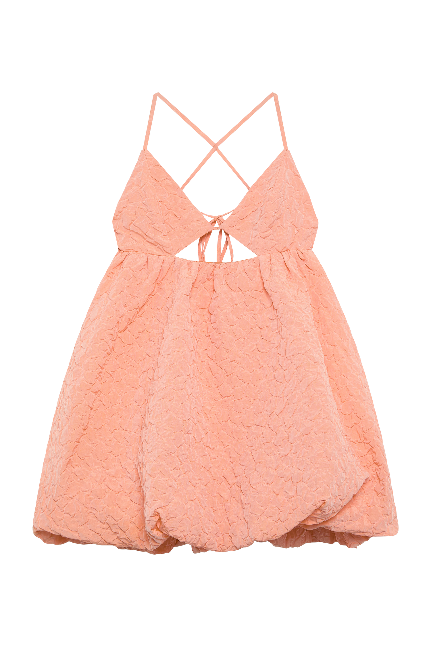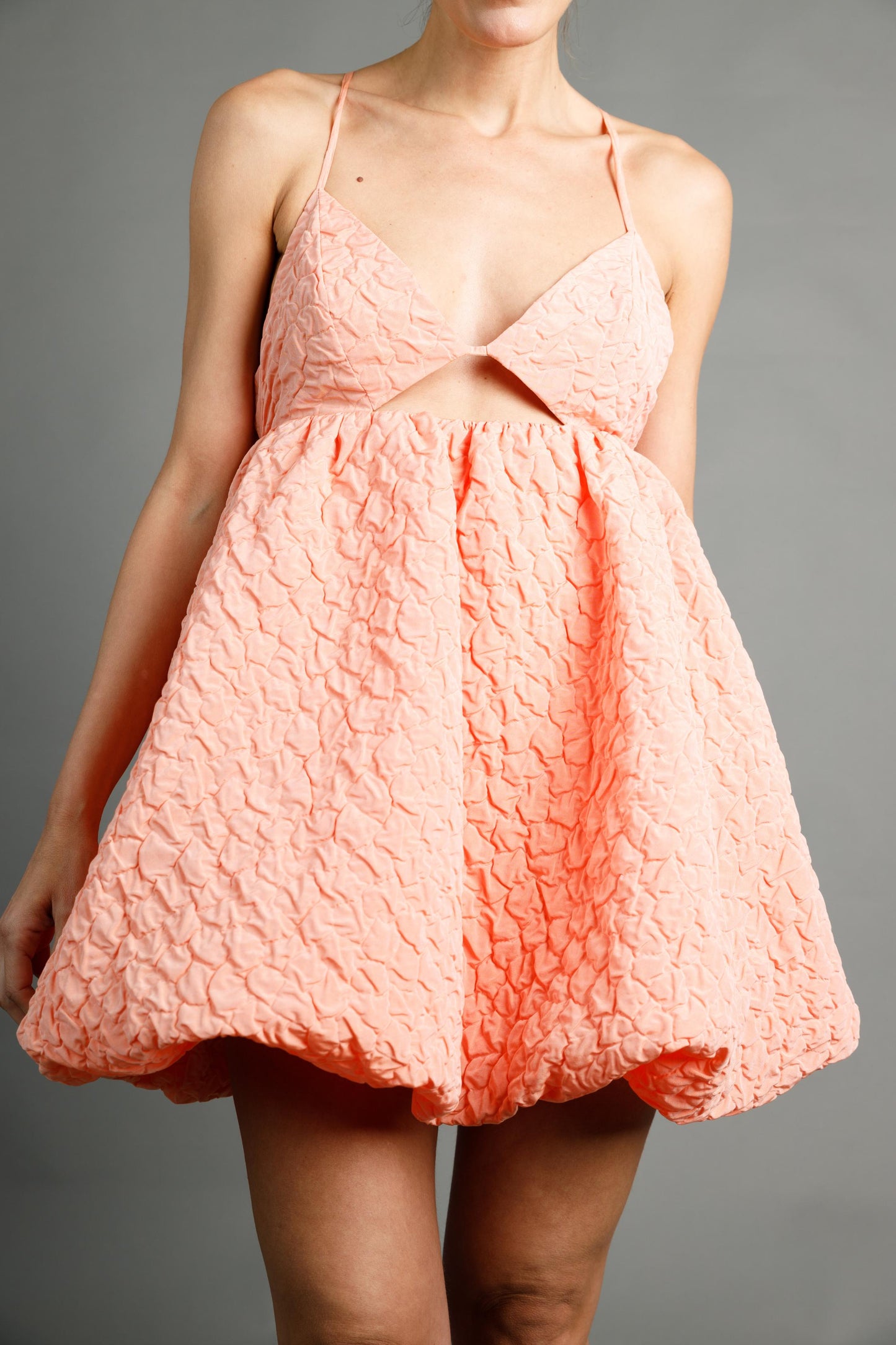 Mini vestit globus en cloqué de cotó amb tirants ajustables.